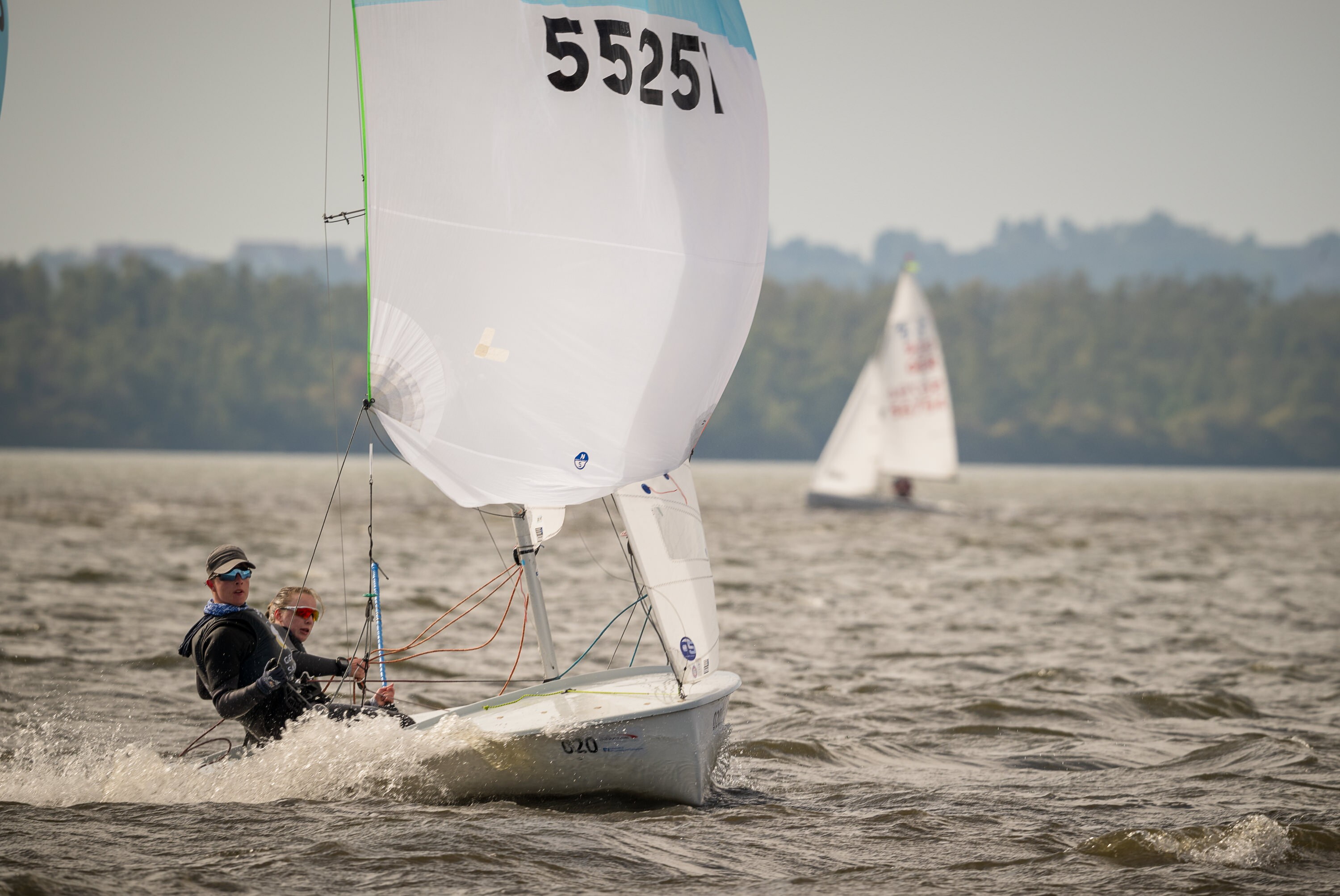 Gemeinsam mit Vorschoter Paul Schmitz (Düsseldorfer Yachtclub) gewann Clara Sigge (ETUF) die U17-Wertung der 420er und belegte in der Gesamtwertung einen hervorragenden 4. Platz – nur vier Punkte trennten die beiden vom Podium. Bei drehenden und teils böigen Winden wurden 10 von 11 Wettfahrten gesegelt, bevor am Samstag das Orkantief „Detlef“ einen weiteren Start verhinderte.