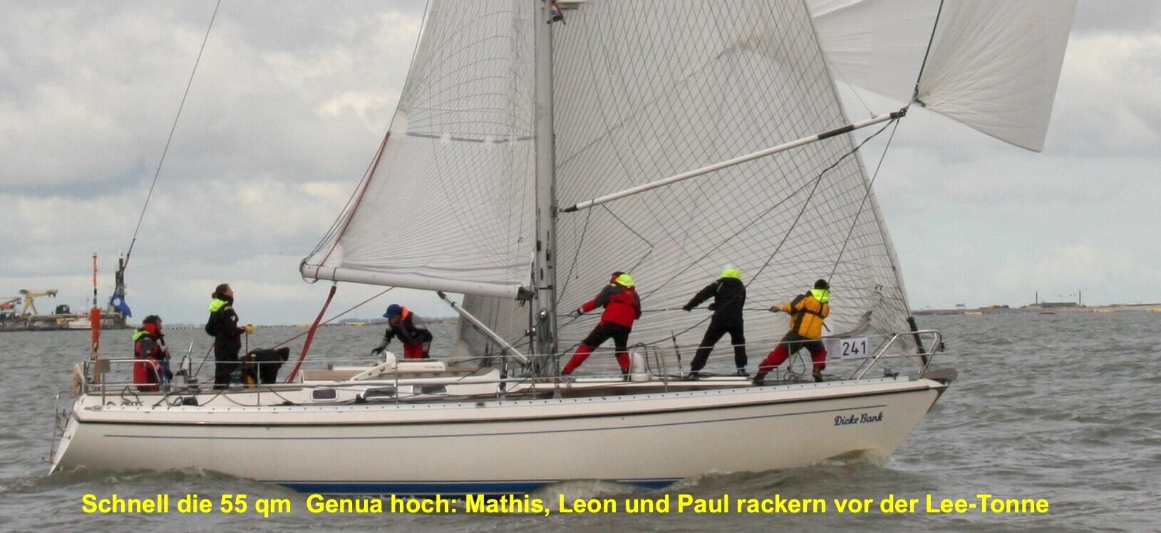 Zum dritten Mal war der DUYC mit 2 Schiffen bei der Pott-Regatta vertreten, zum dritten Mal war die DickeBank dabei und gewinnt ihre erste Regatta, zum dritten Mal steht eine Yacht des DUYC auf dem Siegertreppchen ganz oben (2015 SY MAHE, 2016 SY Heaven 77, 2017 SY DickeBank) und zu dritt lässt sich auch eine 55 m² Genua am schnellsten setzen.