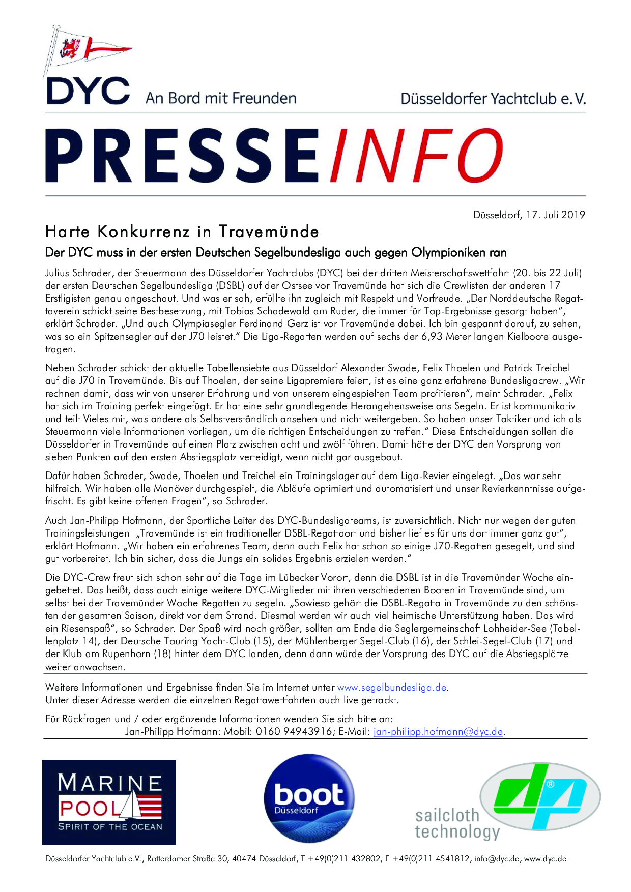 DYC - Pressemitteilung Vorschau auf die erste DSBL in Travemünde