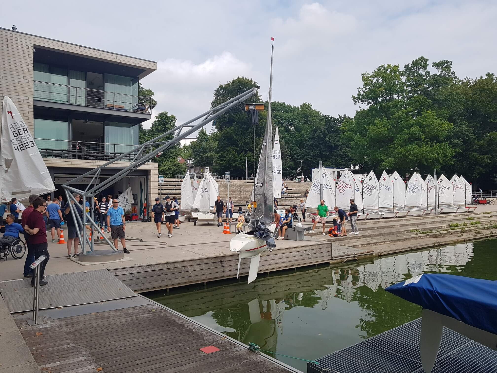 38 Boote waren am Start! Leider konnte wegen des wirklich schwachen Windes nur ein Lauf gesegelt werden. Aber auf die Ergebnisse kam es ohnehin nur den Wenigsten an.