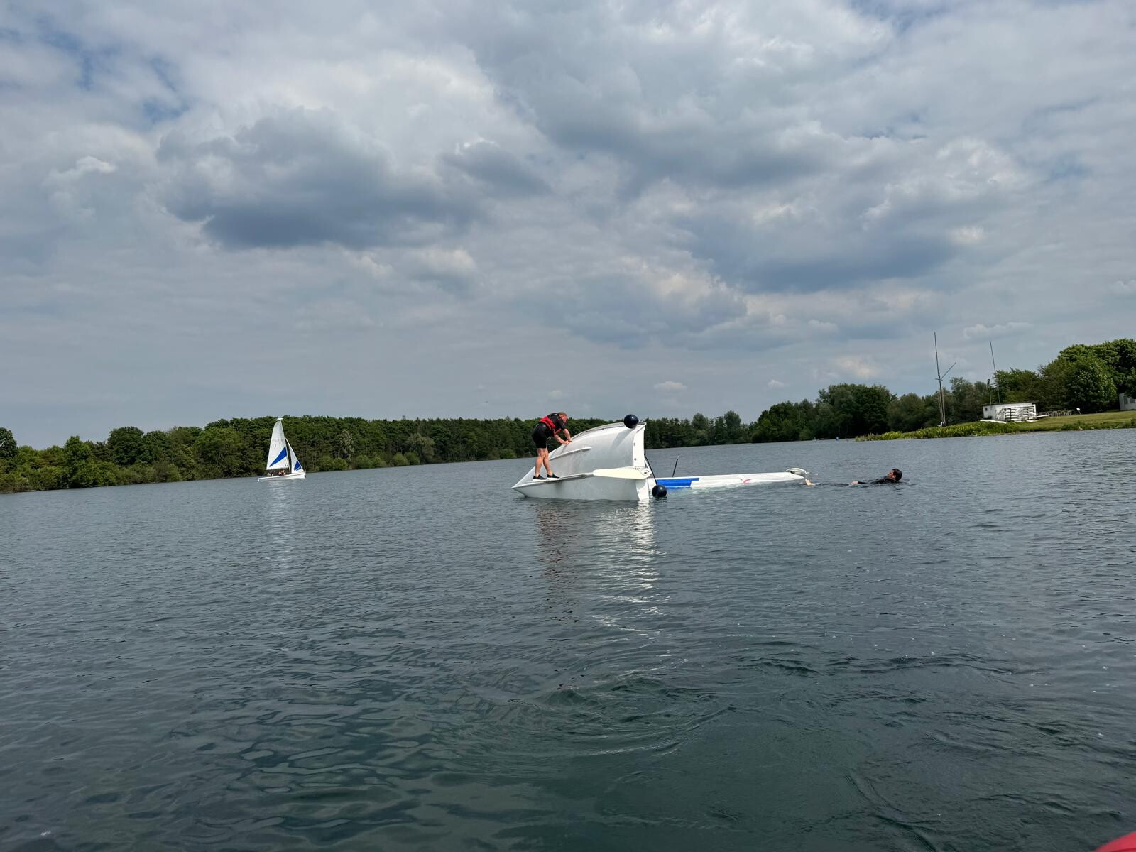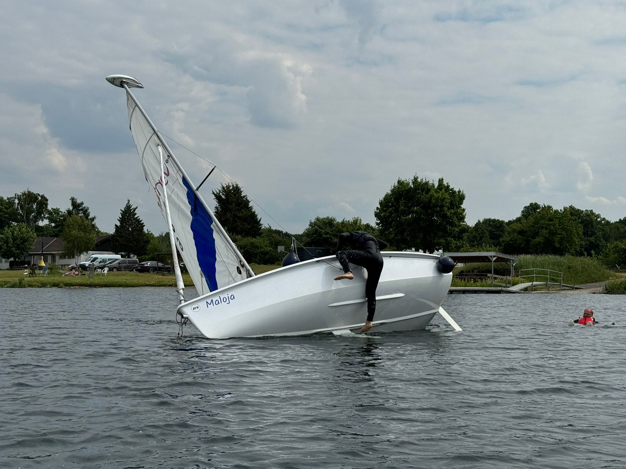 Kursinhalte waren neben theoretischen Grundlagen und methodischen Vorgehensweisen auch Sicherheitsmaßnahmen und Unfallprävention im Segelsport. Ein besonderer Fokus lag hier auf der Vermittlung der segelsportartspezifischen Rettungsfähigkeit. Die Teilnehmenden haben Kenterübungen gemacht, über Bord gegangene Mitsegler*innen gerettet und das motorbetriebene Sicherungsboot gesteuert.