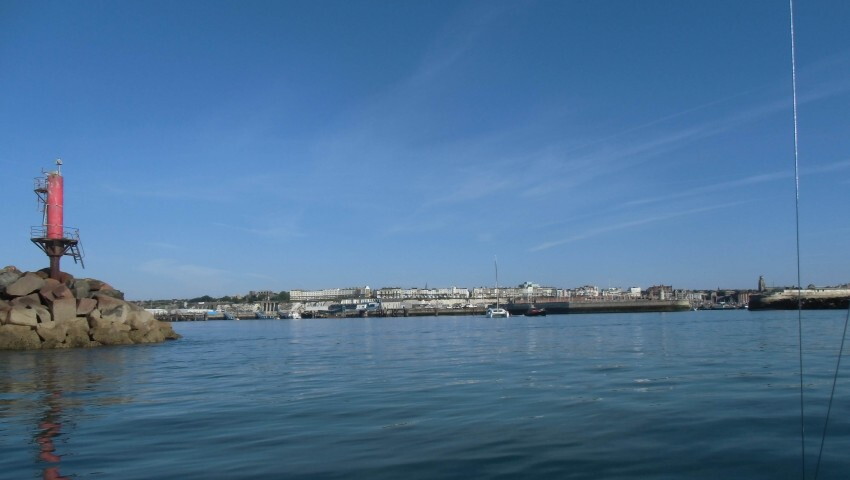 2 Tage später traue ich mich bei nachlassendem Wind und guter Wetterprognose wieder hinaus, mit dem Ziel Isle of Wight. Zuerst erlebe ich Flaute und dann wieder hart West im Bereich von Beachy Head. Nun bin ich die Bolzerei echt leid, hake deshalb die Isle of Wight kurzerhand ab und segle südlich mit Kurs auf Honfleur an der Küste der Normandie. Das ist eine schöne 24h-Strecke und da wollte ich mal wieder hin. Aber auch jetzt hat Rasmus noch Anderes mit mir vor. Wegen des nun halb bis raumen Starkwinds und des entsprechend großen Gierwinkels des Pinnenpiloten berge ich vorsorglich das Großsegel in der Hoffnung, gemütlich unter Fock die Strecke zu bewältigen. Eine Neuberechnung meiner Ankunftszeit ergibt aber ein sehr unvorteilhaftes ETA für Honfleur: innerhalb der nicht bedienten Schleusenzeit, an trockenfallenden Dalben warten zu müssen, bei Dunkelheit, allein. Nein danke. Kursänderung auf Dieppe, etwas östlicher. Dieppe kann bei jeder Tide angelaufen werden. Der Hafen hat keine Schleuse vorgelagert. Man kann hineinsegeln. Wie sympathisch, denke ich … bis ich gegen 01.00 die tatsächlichen Verhältnisse erlebe. Noch im Hafen herrscht so viel Schwell, dass ich mich kaum aufs Vorschiff traue, um das Anlegemanöver vorzubereiten. Erst weit binnen kann ich die Fock bergen, den Jockel anschmeißen usw., usw., aber rasch bitte!