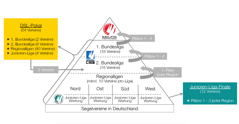 Der Deutsche Segel-Liga Pokal ist nun die Veranstaltung, bei der die besten Vereine der verschiedenen Ebenen der Liga Pyramide gegeneinander antreten. Der Pokal tritt terminlich und örtlich in die Fußstapfen der beliebten Großveranstaltung beim FSC und der Hanseatischen Yachtschule in Glücksburg. Das Tripple aus dem Sieg im Liga-Pokal, der Deutschen Meisterschaft der Vereine in der Segel-Bundesliga und dem Gewinn der SAILING Champions-League ist nun möglich.