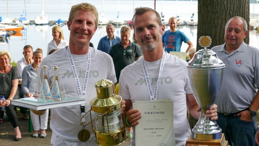 40 Crews meldeten, 37 traten an, um den Deutschen Meister zu ermitteln. Fünf Läufe konnten am Mittwoch und Donnerstag bei hochsommerlichen Temperaturen und Windstärken von 3-4 gesegelt werden. Am besten mit den drehenden Winden kam die Crew Clemens Schulte-Feldmann (YCS)und Sven Wehrenbrecht (YCWM) zurecht. Mit vier(!) Ersten Plätzen. Heimische Segler konnten ganz vorne mitmischen und immerhin 5 der TOP 10 Crews kommen aus NRW.