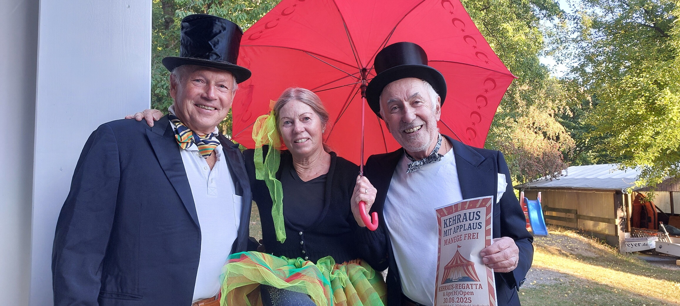 Am Ende des ersten Segeltags empfing der Segelclub Jülich die Seglerinnen und Segler sowie die weiteren Gäste dann zum Essen und zur anschließenden Party unter dem Motto „Kehraus mit Applaus“. Nach einem leckeren Essen, bei dem für jeden etwas dabei war, wurde kräftig gefeiert. Dazu war die Bootshalle in ein buntes Zirkuszelt verwandelt worden. Von Zirkusdirektoren über Zauberer und Clowns bis hin zu allerlei Tieren waren fantasievolle Kostüme zu bestaunen. Der ein oder andere wagte sich sogar mit kleinen künstlerischen Einlagen in die Manege und erntete getreu dem Partymotto viel Applaus!