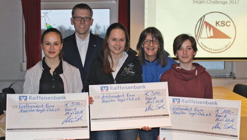 Am Freitagabend fand im Vereinsheim des Kaarster Segel-Clubs die Siegerehrung der „Hallo Zukunft - Die Segel-Challenge 2017“ statt. Im Rahmen des Wettbewerbs hatte der Kaarster Segel-Club seine Mitglieder dazu aufgerufen, sich sportliche Ziele für die Segelsaison 2017 zu setzen. Ein Jurygremium ermittelte die drei Sieger aufgrund ihrer persönlichen Leistungssteigerung, die sich dank einer Spende der Raiffeisenbank Kaarst über ein Preisgeld in Höhe von insgesamt 900 Euro freuen konnten.