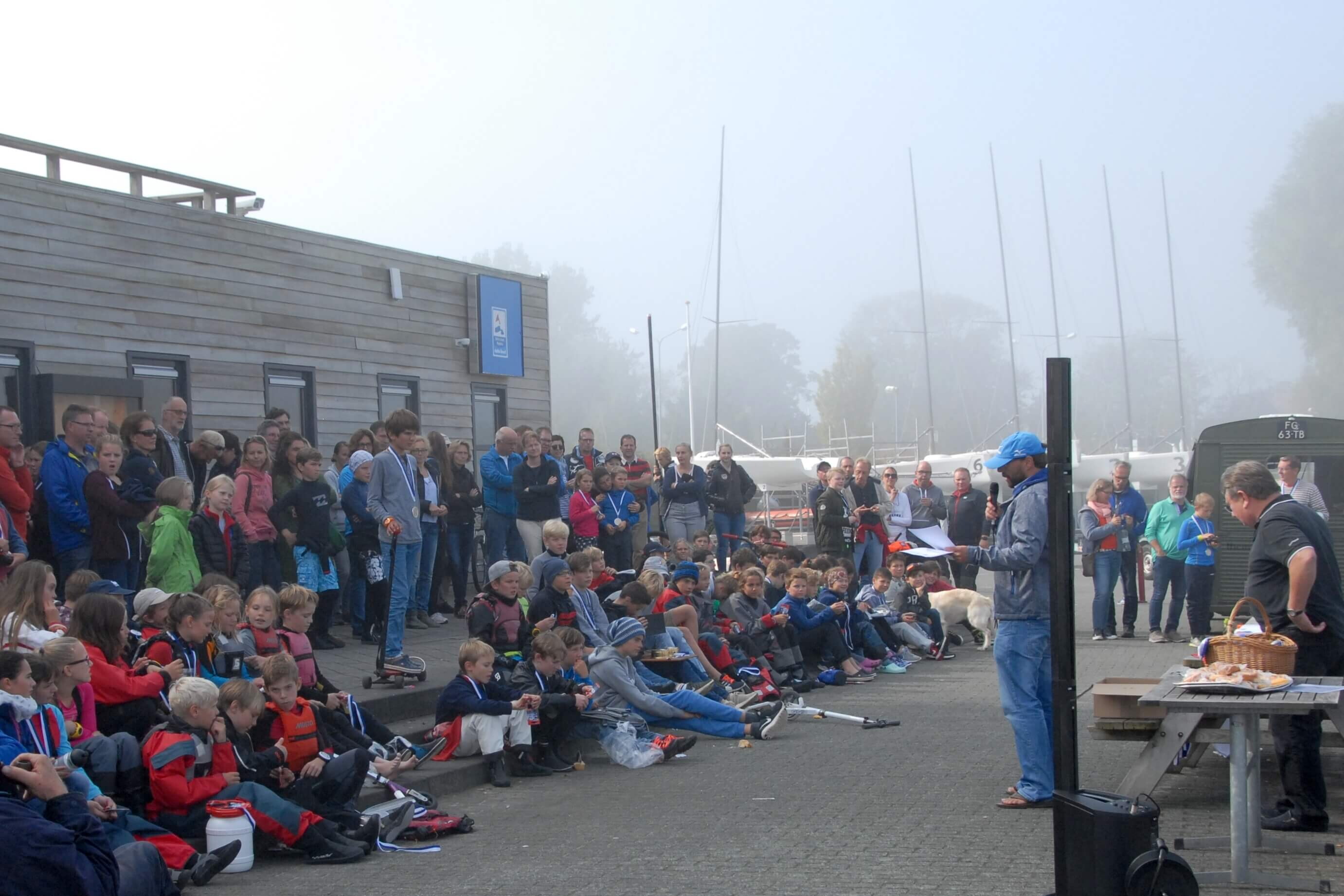 Bei der großen Preisverteilung, bei der zahlreiche Preise vergeben wurden, kam dann endlich die Sonne wieder und so genossen alle die letzte Stunde in fröhlicher, großer Runde. Mit der Ehrung der Landesjüngstenmeister durch den Landestrainer Paul Kessler endete die diesjährige pinta Opti-Trophy.