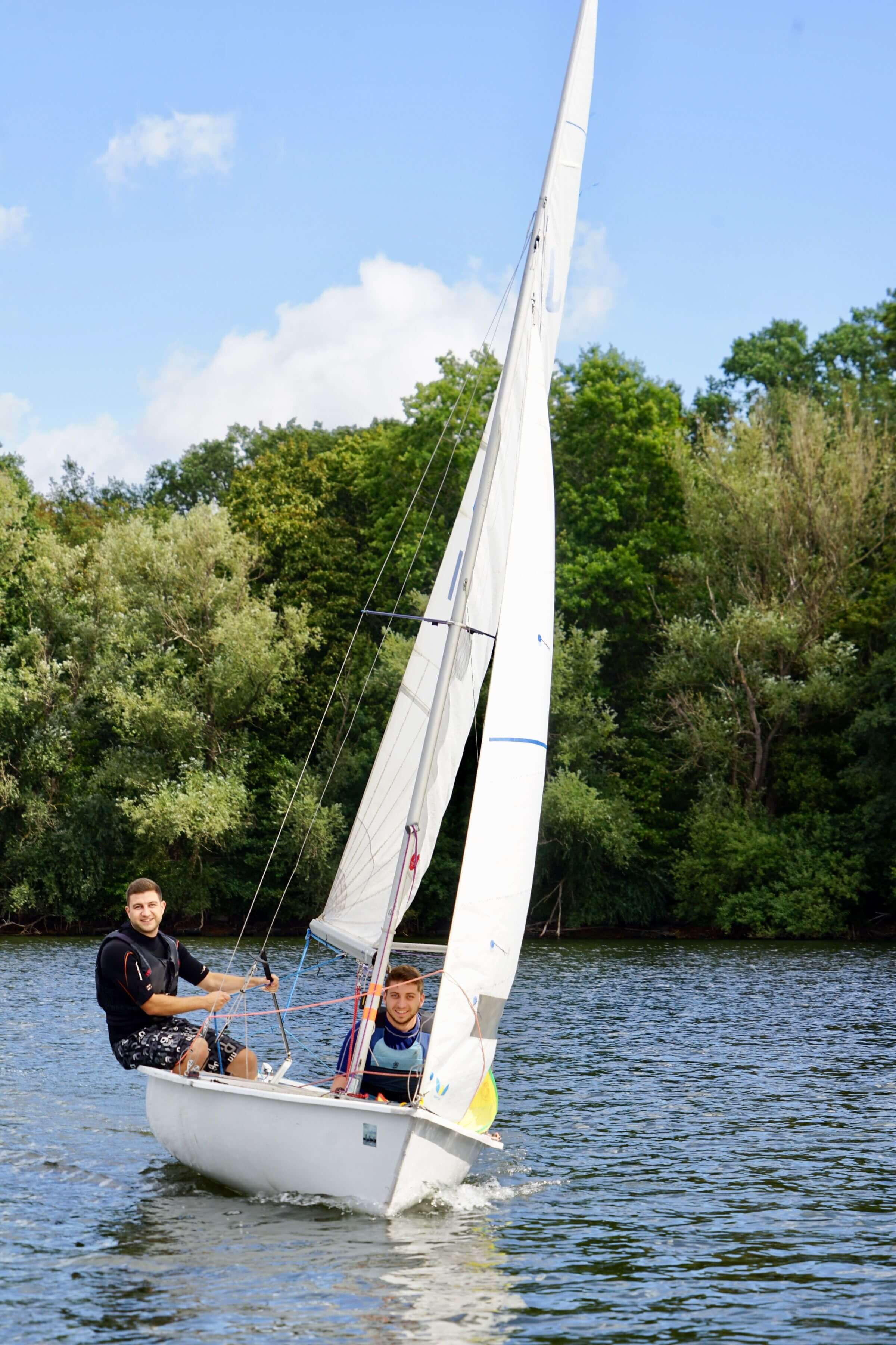 Der Samstagmorgen präsentierte sich grau in grau bei starkem Regen mit eher schwachem Wind. Es schien, als sollte es ein nasser Tag mit Startverschiebung werden. Doch weit gefehlt. Pünktlich zum Aufbauen der Boote kam die Sonne raus und zur Steuermannsbesprechung kam auch der erforderliche Wind auf.