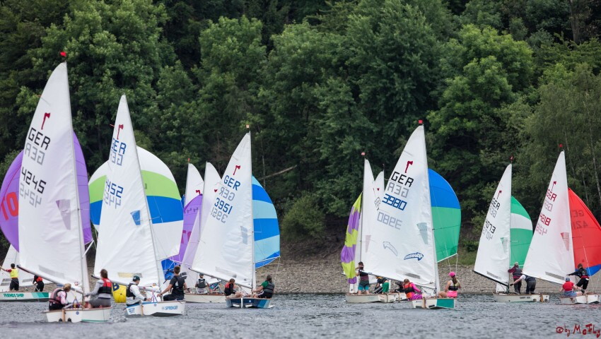 Die letzte Wettfahrt war für 11Uhr am nächsten Morgen geplant, doch der Rurseewind macht schon mal was er will und so begann die vierte und letzte Wettfahrt erst um kurz nach 12, dafür aber bei angenehm warmen Temperaturen und Sonnenschein.