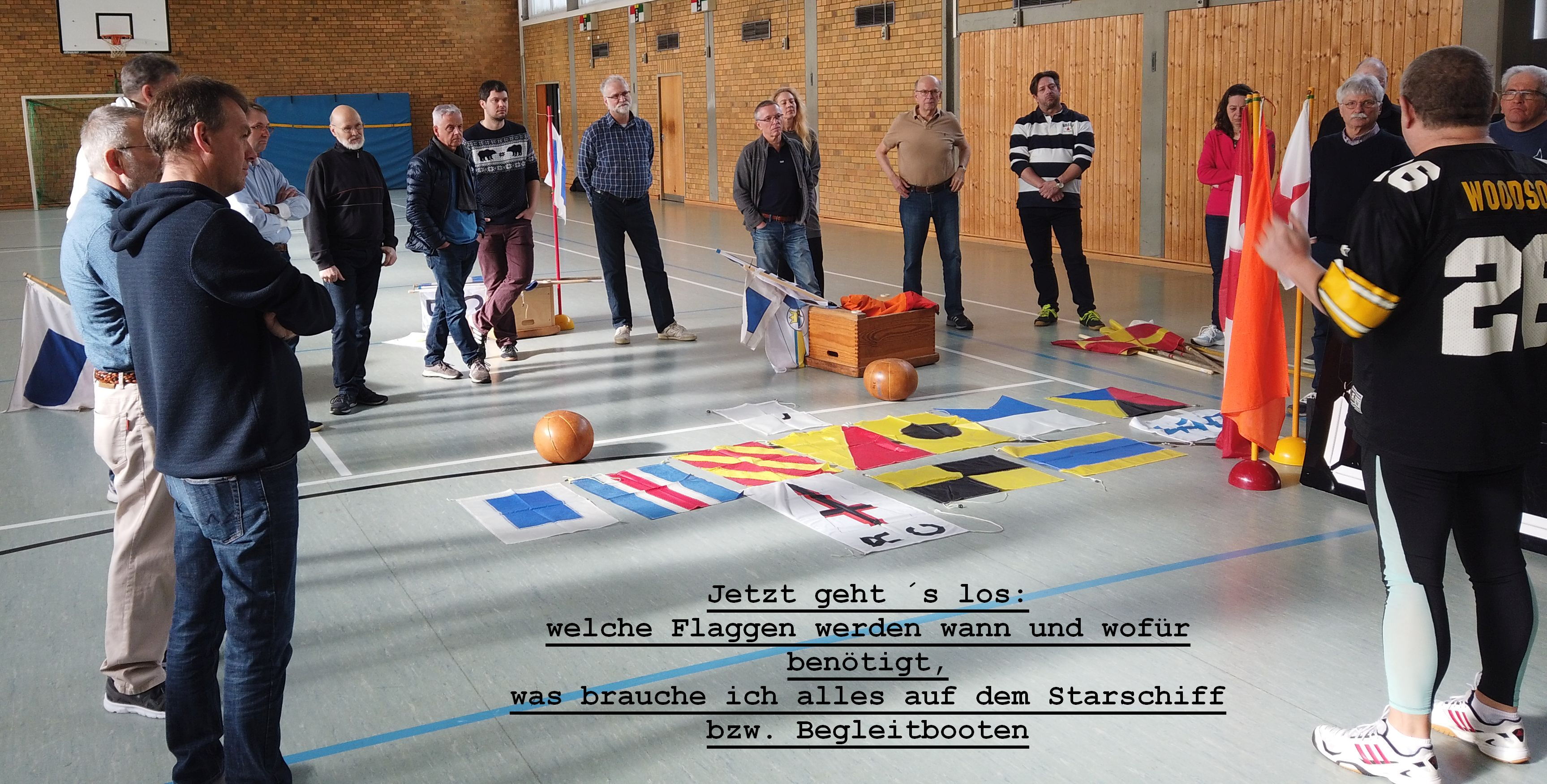 Es begann mit der notwendigen „Inventur“, was gehört alles dazu, und führte in kurzweiliger Form durch fast alle anfallenden Regatta-Themen, wie Startverfahren, Signalisierung und Wettfahrtkommunikation.