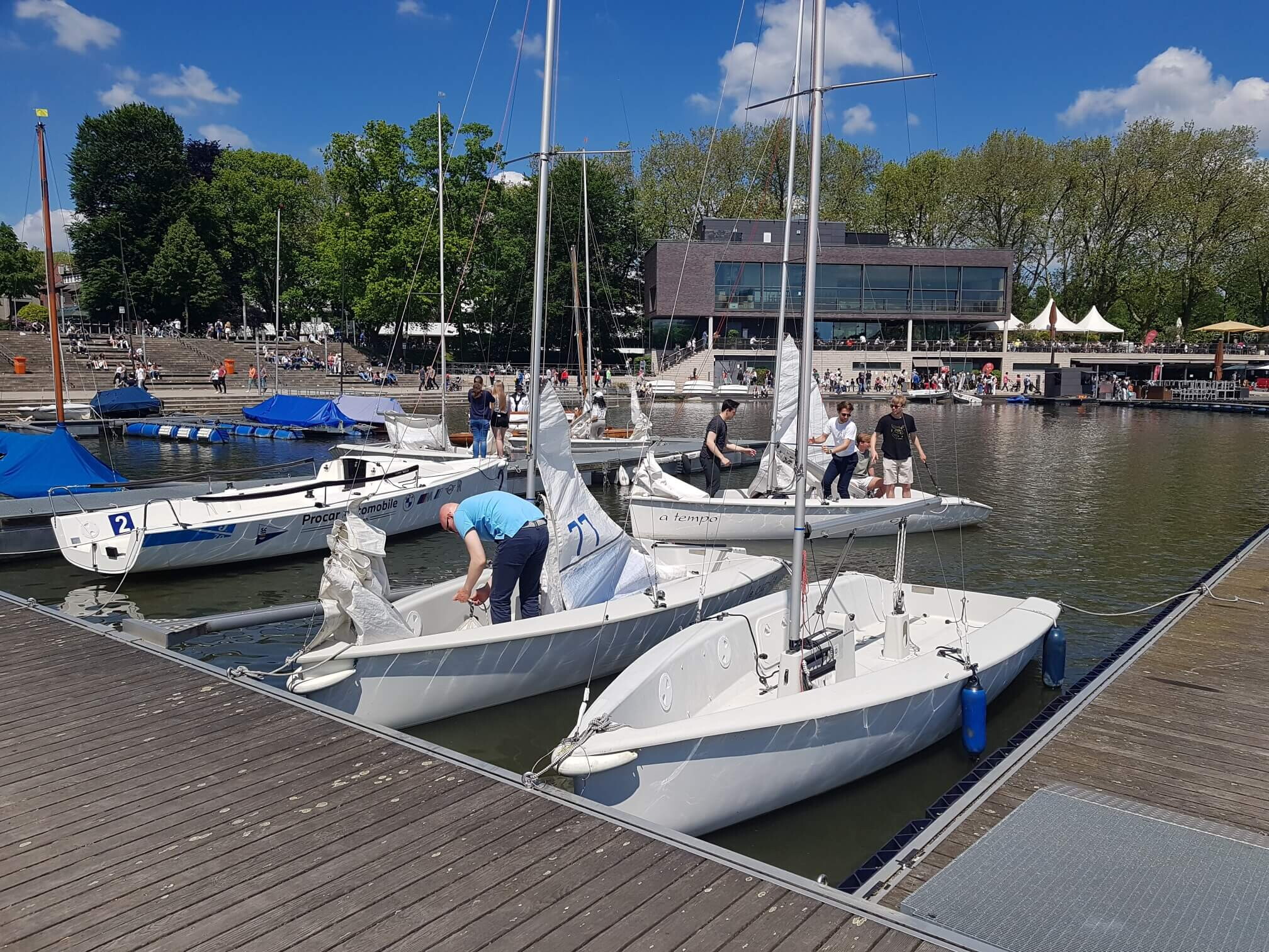 Die erfahrenen SCM Jugendsegler und Seglerinnen laden ihre Gäste ein, mit Clubeigenen Booten ein, tolle kleine Törns auf dem sommerlichen Aasee zu drehen. Für die notwendige Sicherheit ist natürlich durch die Stellung von Schwimmwesten gesorgt. Und wer Spaß am Segeln gefunden hat, kann gerne öfter kommen.