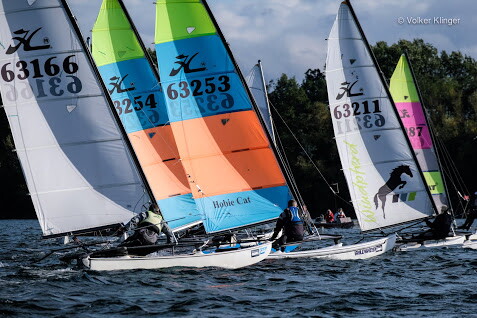 21 HC 14 nahmen an der IDB teil und bei der Ranglistenwertung für HC 16 hatten sich 17 Teams gemeldet. Der Start war pünktlich und die Vorboten von Mortimer forderten die Teilnehmer und ihr Material. Die Böen peitschen über den See und brachten manchen Segler in Bedrängnis und zum Kentern. Materialschäden sorgten leider für diverse Aufgaben und Reparaturen. Auch das DLRG Team war gefordert und konnte hierbei die qualifizierte Ausbildung unter Beweis stellen.