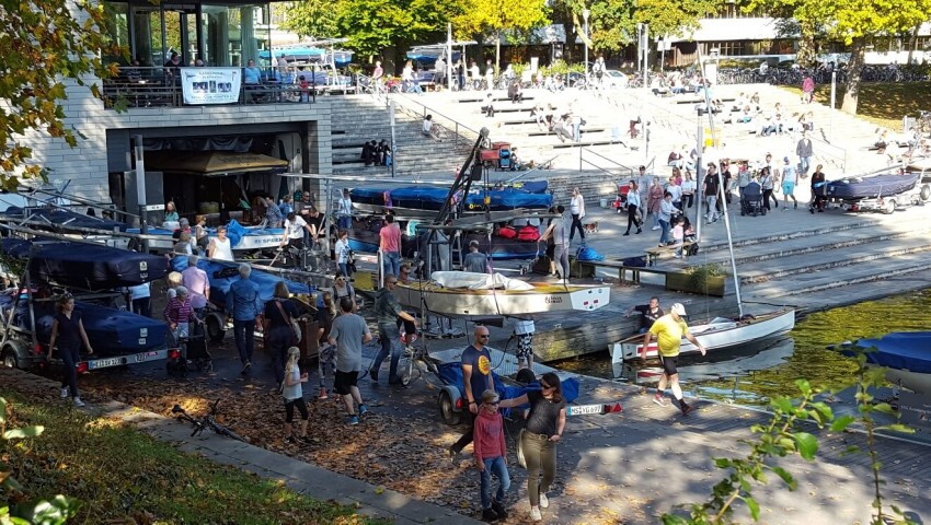 Dann folgten aber ganz viele gute Segler vom Rursee und anderen Revieren und erst auf Platz 15 kam eine Hansacrew und auf Platz 17 folgte der SCM Vorsitzenden Andreas Rütter mit Dieter Bodenhausen . Die SCM Segler waren einfach zu sehr mit der Organisation des Mega Events beschäftigt. Crews aus München, Berlin oder aus Itzehoe hatten den Weg zum Aasee angetreten um hier zu segeln- hat 2017 geklappt - aber auch um den Saisonabschluss zünftig zu feiern – hat auch geklappt. 2018 auf ein Neues bei Deutschlands größter Piratenregatta auf einem der kleinsten Reviere.