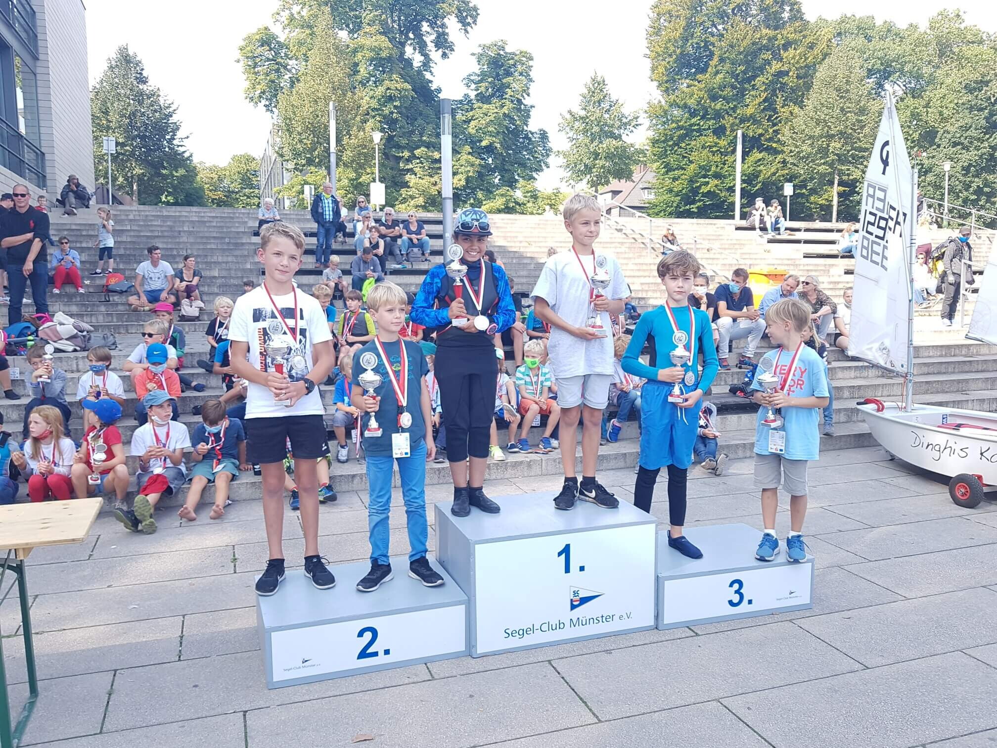 Dazu gab es ein Traumwetter mit Sonne und Wind, begeisterte Kinder und stolze Eltern, die Stege und Ufer am Startmast von Wettfahrtleiter Uwe Holzhäuser zur Segelarena machten. Gewonnen haben alle, so Frank Butzlaff, der Leiter des Beratungs-Center Münster City der Sparkasse Münsterland Ost, weil es ideale Bedingungen waren und das Segeln deshalb so super viel Spaß gemacht hatte.
