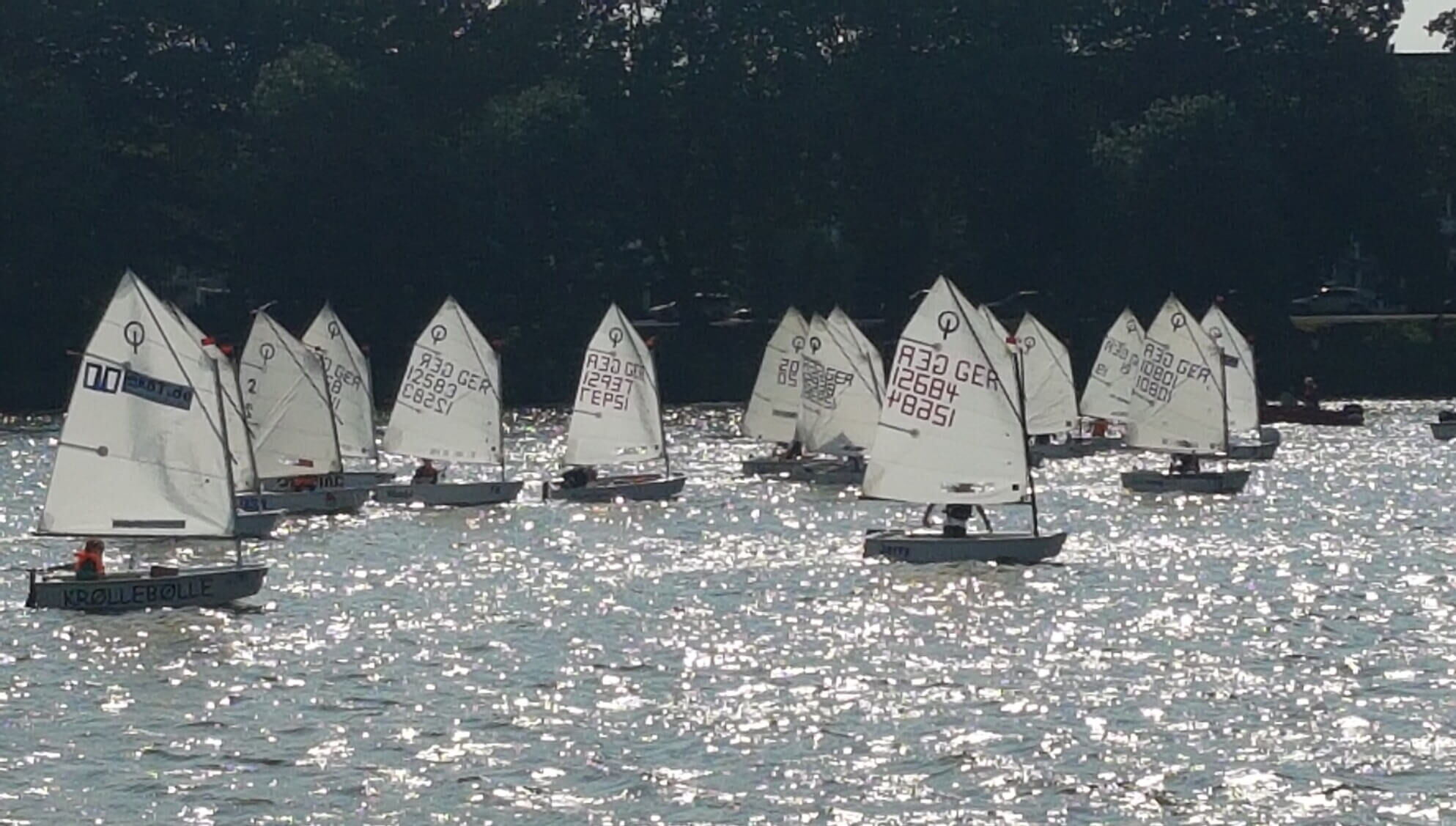 Bei zwischen 2 und guten 3 Windstärken- idealem Optimisten Segelwetter konnten 3 Läufe durchgeführt werden. Im ersten Lauf hatten die Starter der Segelschule Overschmidt trotz der Trockenübungen des Wettfahrtleiters noch etwas Orientierungsschwierigkeiten, aber ab dem 2. Rennen klappte es bestens. Und die Vereinssegler/innen hatten den Kursverlauf ohnehin gut drauf. In jedem Rennen starteten die, mit etwas schnelleren Booten aus-gestatten Vereinssegler zuerst und mit etwas längerem Kurs. Ihnen folgten dann die Overschmidt Optimisten nach den gleichen Regeln auf kürzerem Kurs. Die Sicherungsboote hatten nichts zu tun und mussten nur hin und wieder etwas zu coachen, damit alle Starter gut über die Runden kamen.