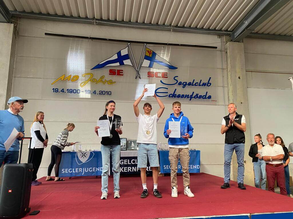 Im ILCA 4 belegte das Team West sogar das gesamte Siegerpodest, mit Clara Bonhagen (ZSK) auf Platz 2 und Jonathan Brinkmann (YCL) auf Platz 3.