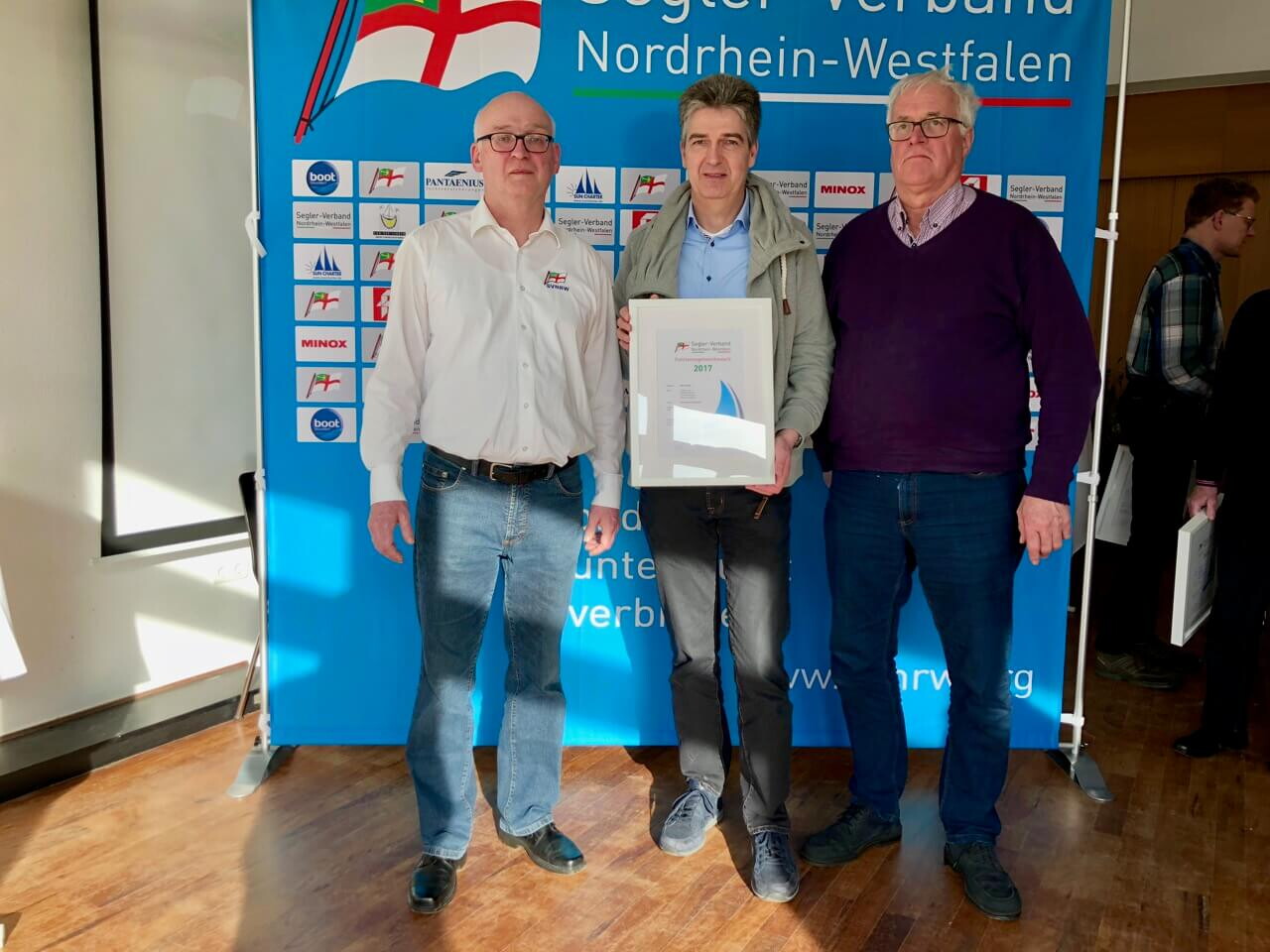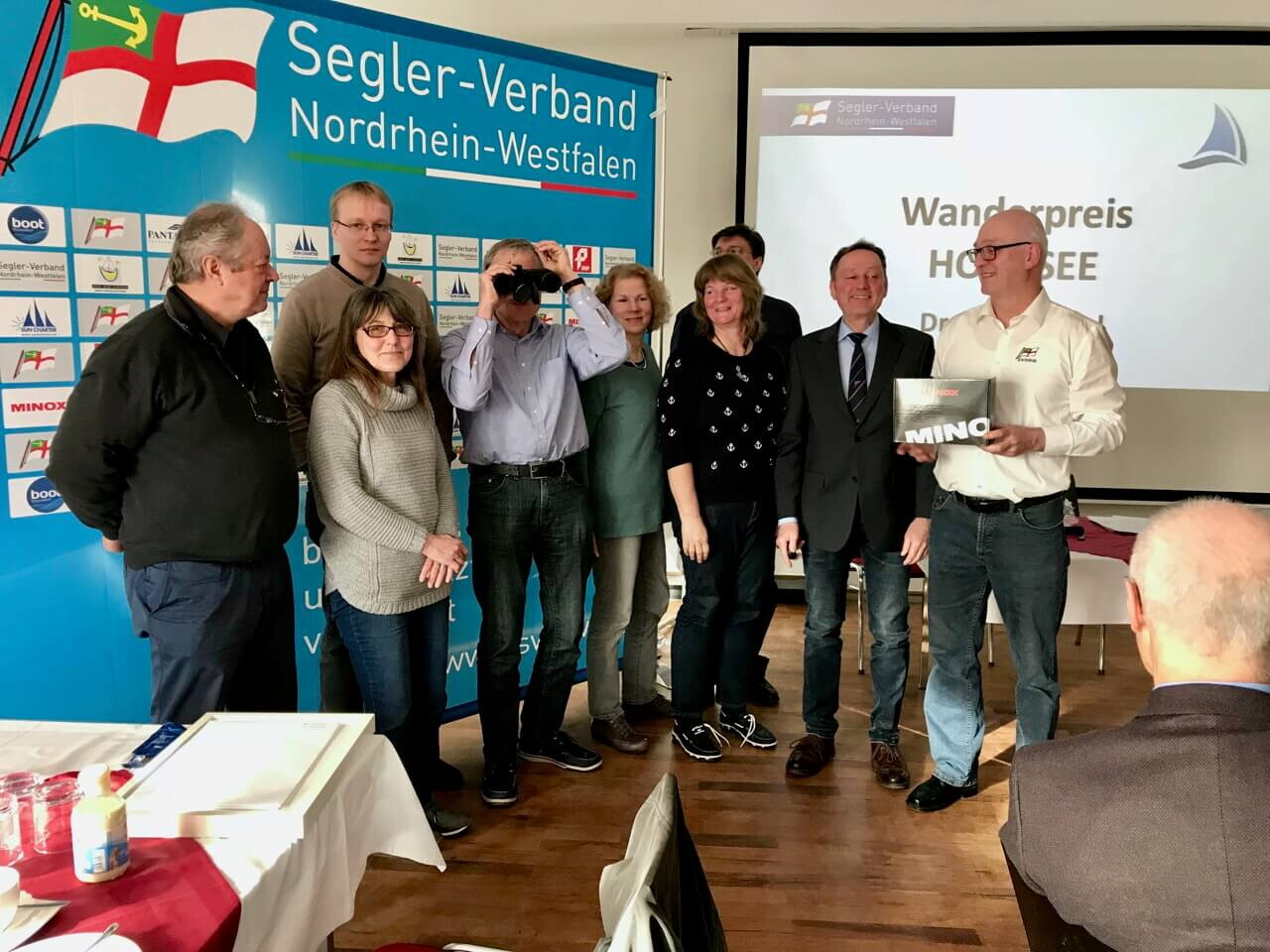 Unser Partner MINOX stiftete ein wertvolles Fernglas für die Yacht, die am meisten beim Wettbewerb eingesetzt wurde. Frank Suchanek erhielt zur Ausstattung für die vereinseigene Yacht OEDING (X 46) vom Yachtklub Bayer Uerdingen diesen tollen Preis und die zahlreich mitangereisten Vereinsmitglieder freuten sich mit ihm.