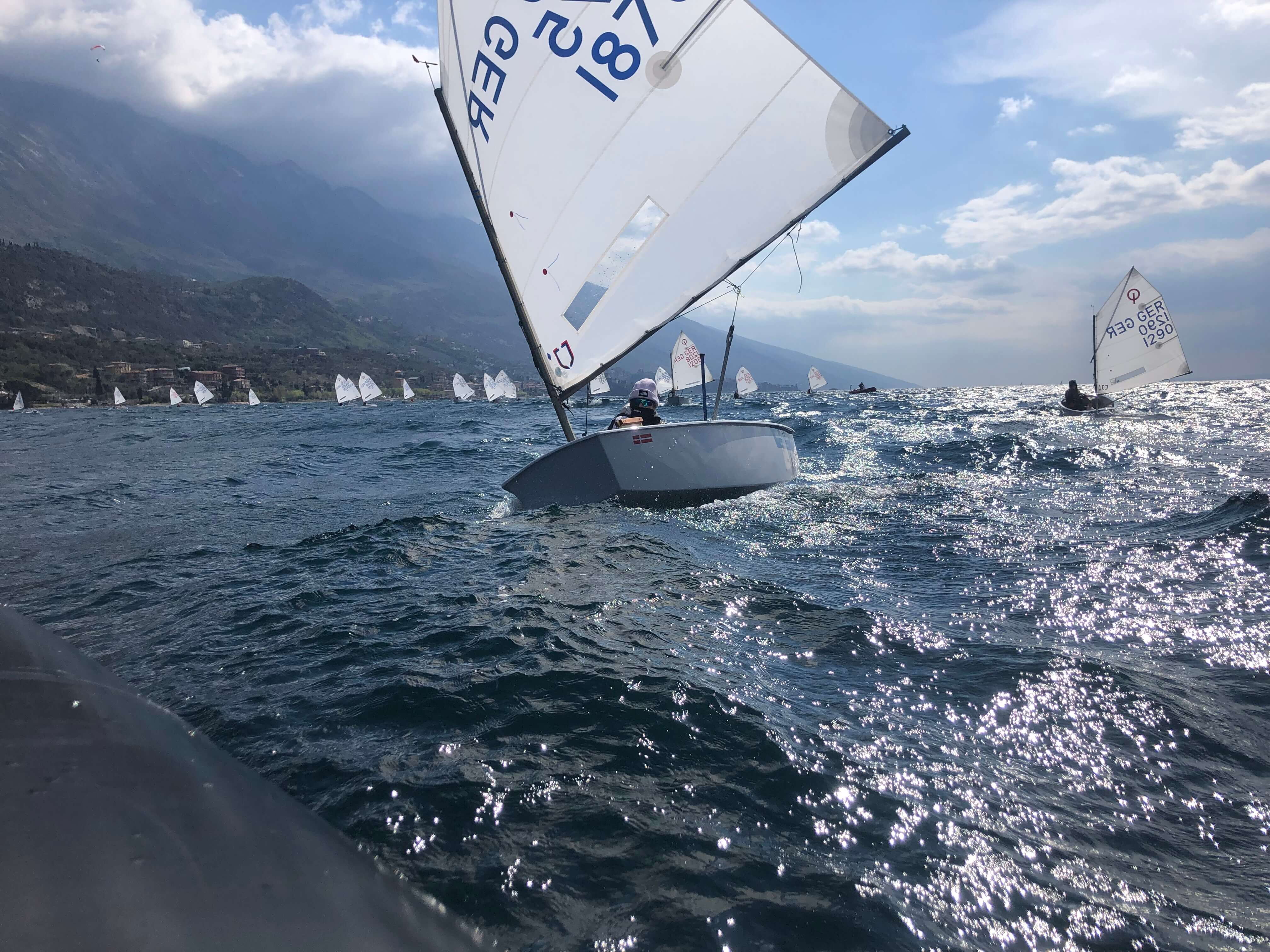 Mit den Trainern George Blaschkiewitz, Max Sporleder und Tim Kirchhoff begann das gemeinsame Team-West-Training für die Optimisten am Gardasee.