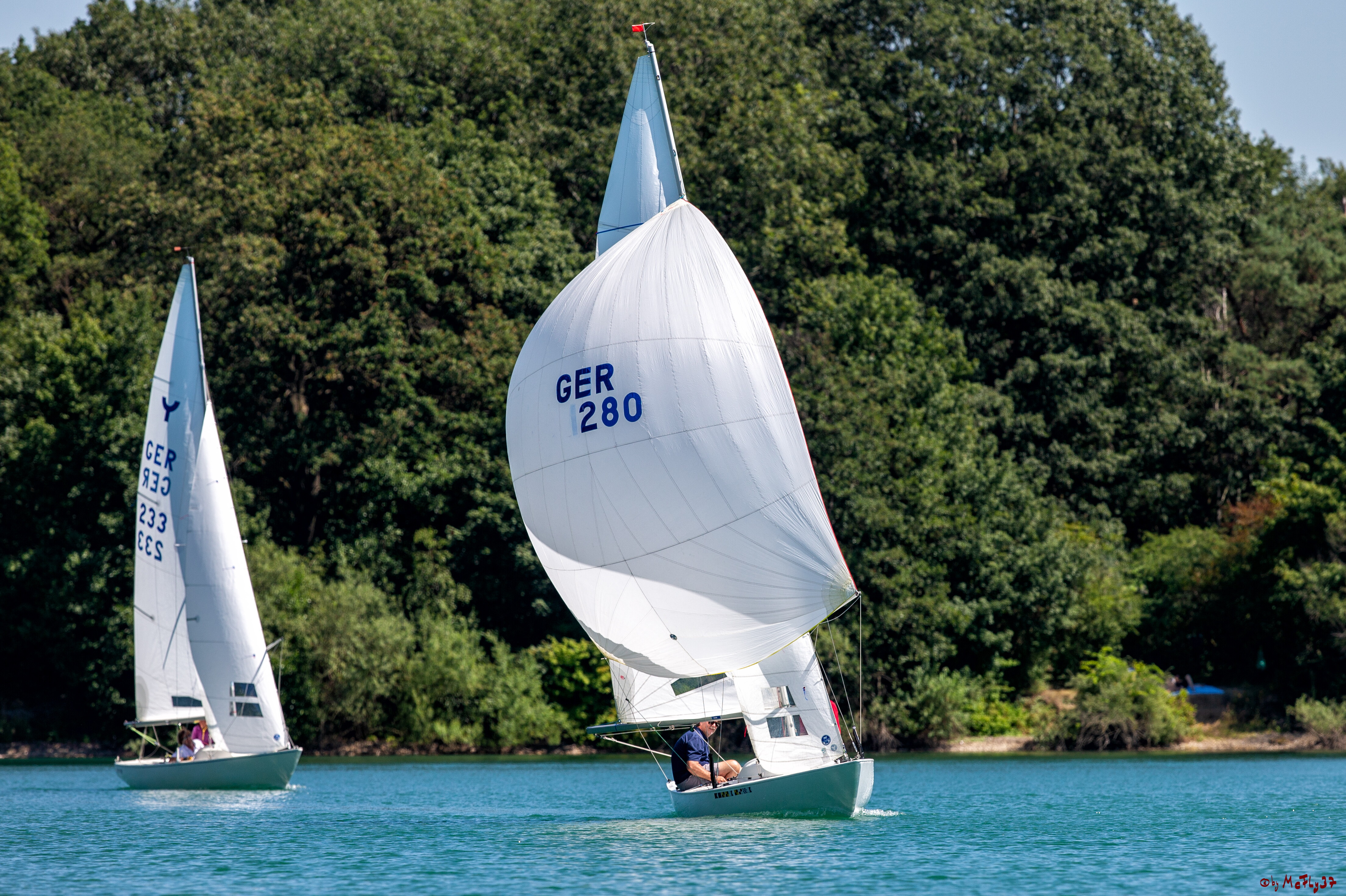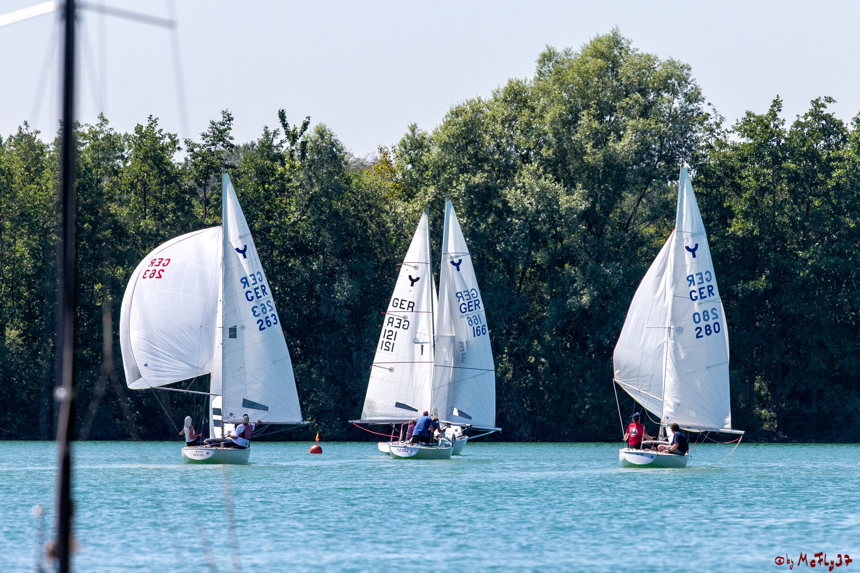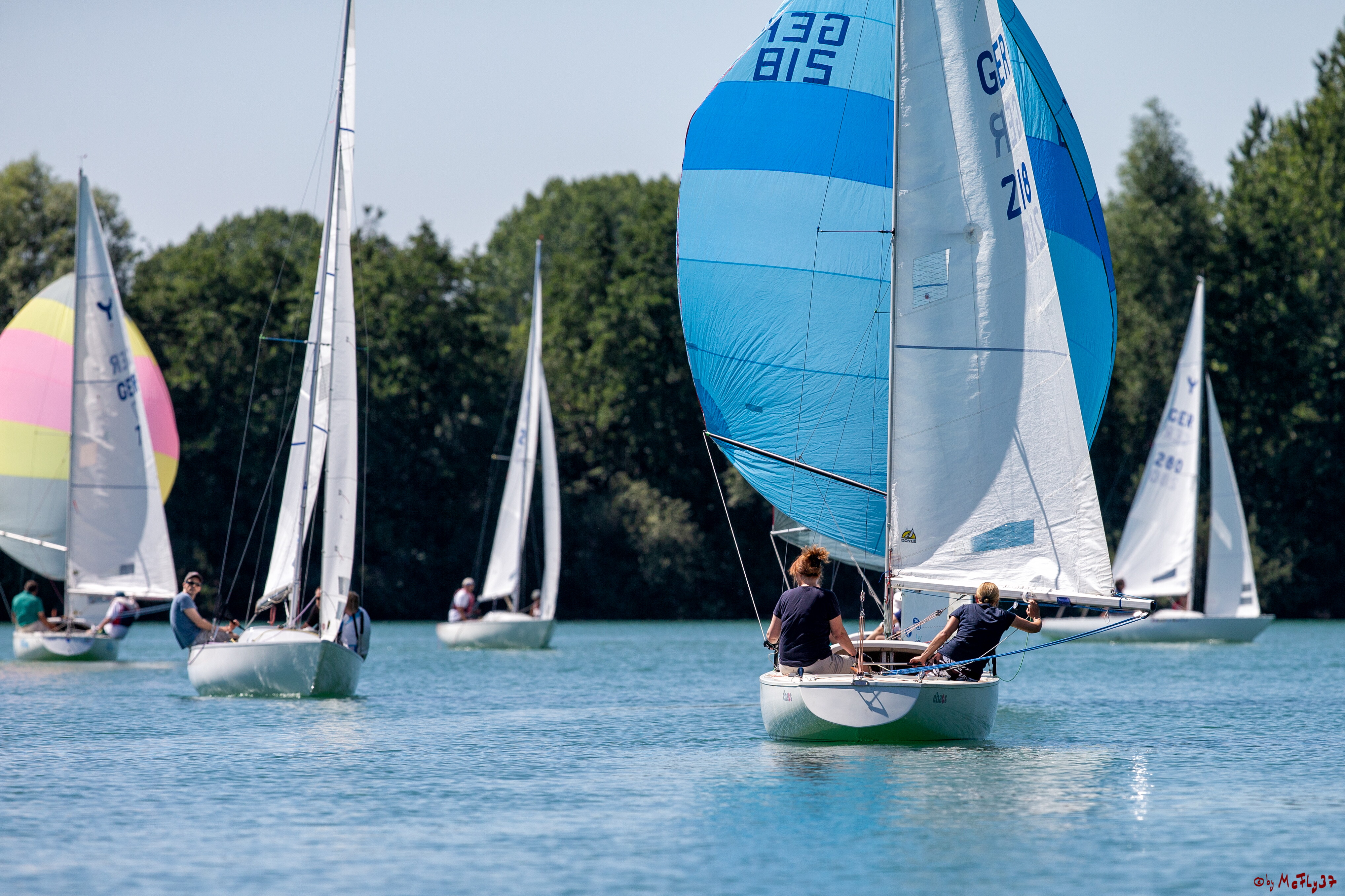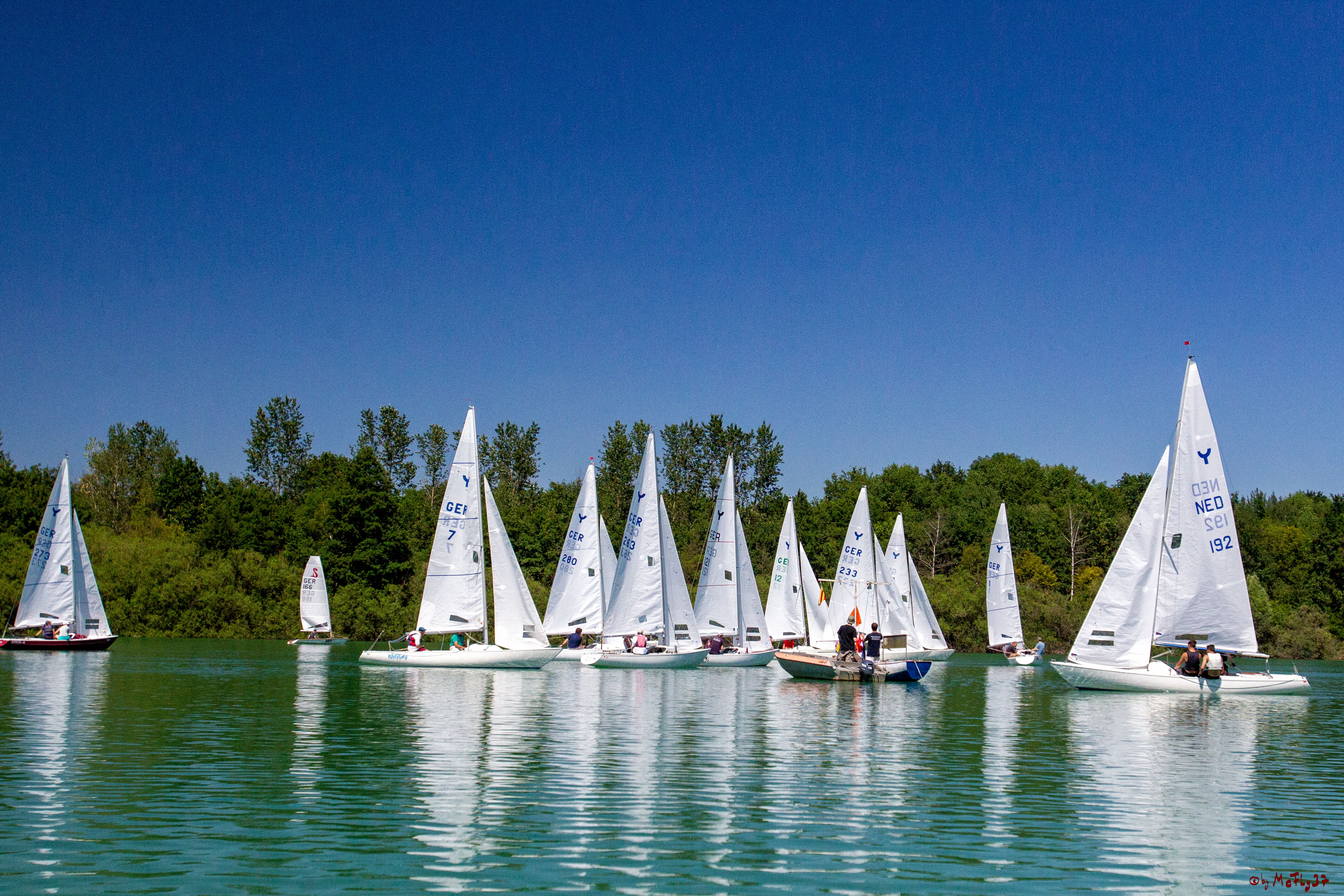 Am Wochenende 29./30. Juni fand am Heidesee in Geldern der diesjährige Gelderland-Cup für Yngling und Seggerling statt. Die Yngling-Klasse segelte in diesem Jahr wieder den Landesmeister NRW aus. Der Samstag begann recht vielversprechend, aber im Laufe des Tages lies der Wind soweit nach, dass nur ein Lauf gesegelt werden konnte. Bei Bier und Grillwurst ließen die Segler den Tag noch einmal Revue passieren und hofften auf mehr Wind am Sonntag.