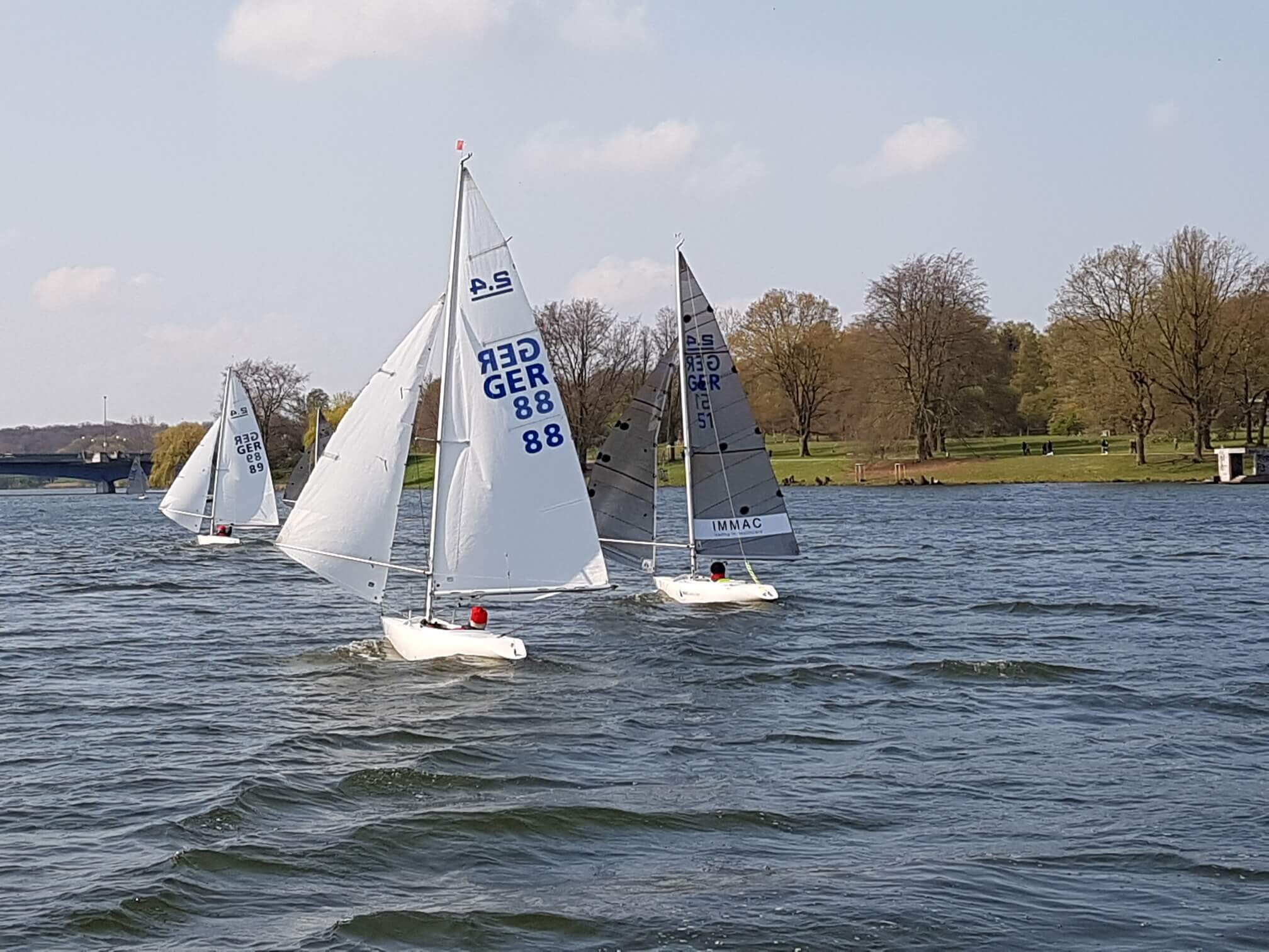 Bei schwachem Wind, mässigem Wetter und äußerst schwierigen Verhältnisse auf dem Aasee dominierten zwei Altmeister – Silbermedailien Gewinner von 1972 Uli Libor (Platz 1 mit ausschließlich 1. Plätzen) und Detlef Müller Bölling (Platz 2) sowie Moritz Jacob (Platz 3) das 22 Boote starke Feld der internationalen 2.4 mR Boote in 5 Wettfahrten. Die schnittigen Einmannkielboote und ihre Crews inder2.4mR Klasse haben sich bei schwierigen Wind- und Wetterverhältnissen auf dem Aasee nichts geschenkt