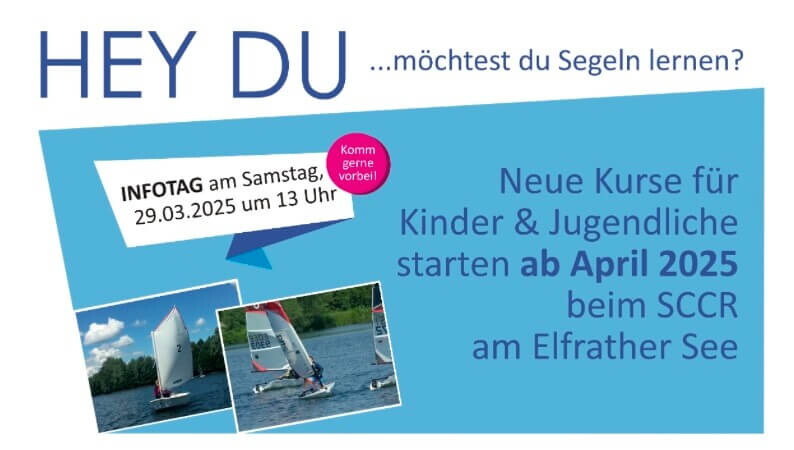 Du möchtest Segeln lernen? Dann komm am 29.3. 2025 ab 13 Uhr beim SCCR vorbei, wenn unsere Jugend die Segelsaison eröffnet!